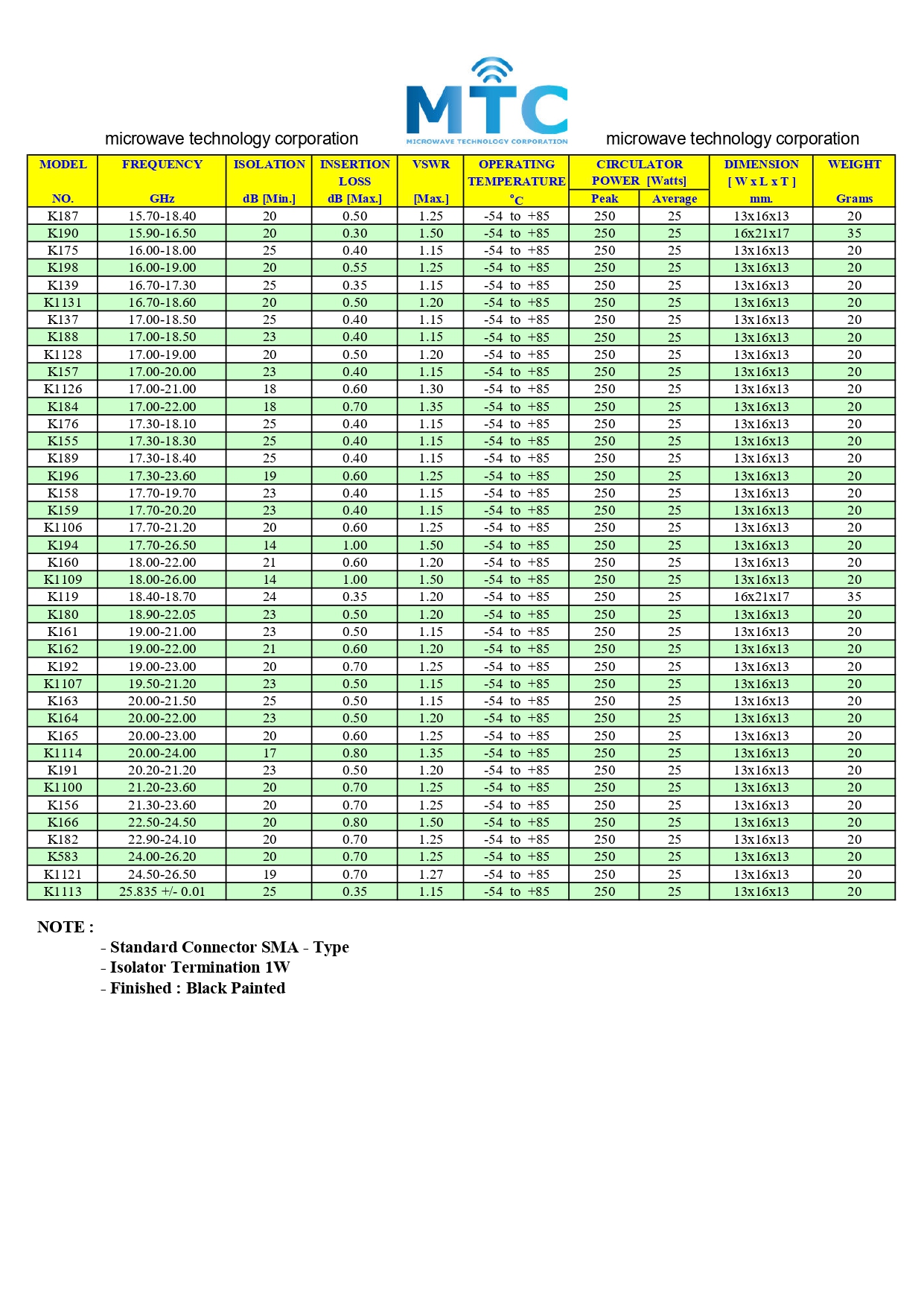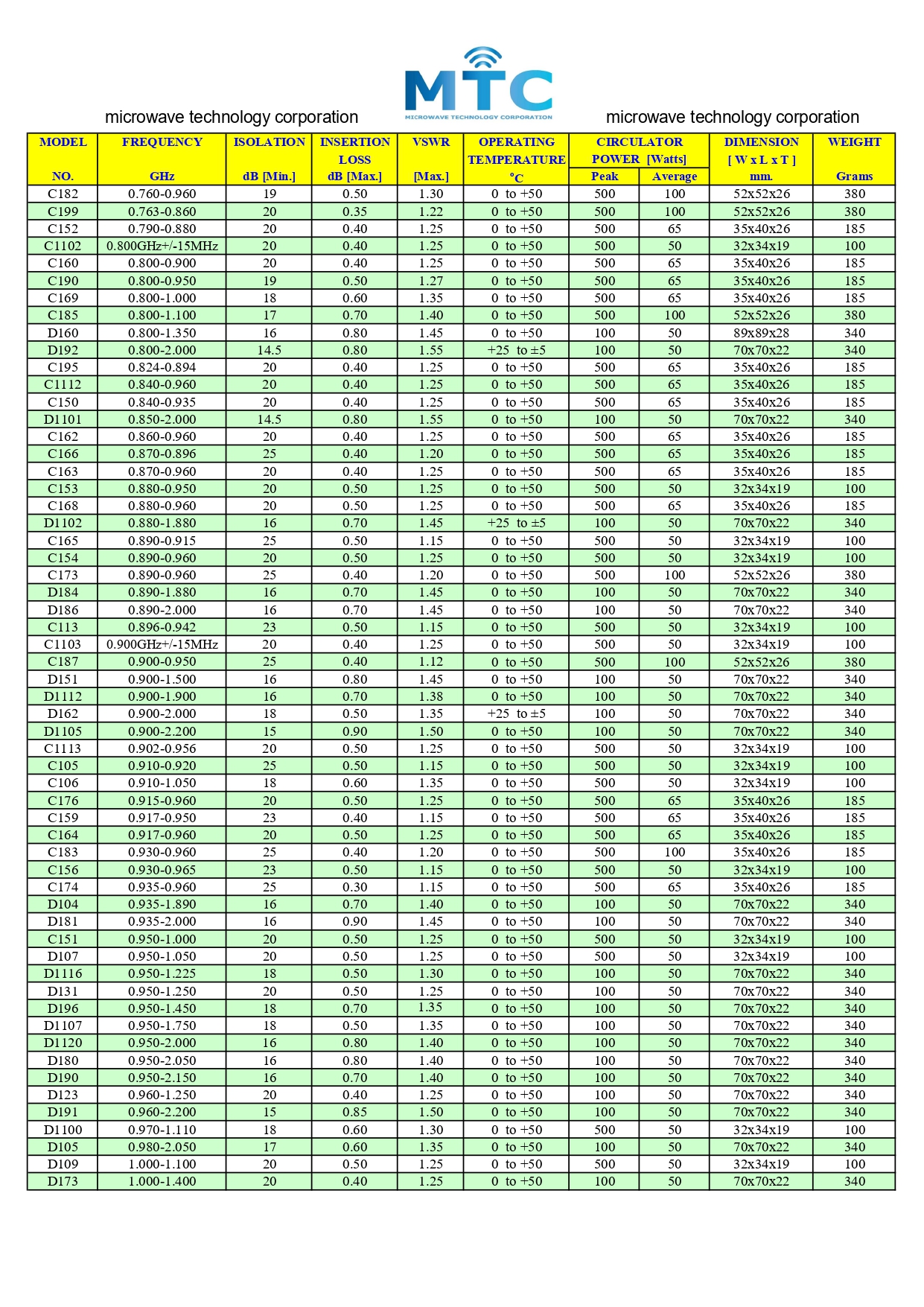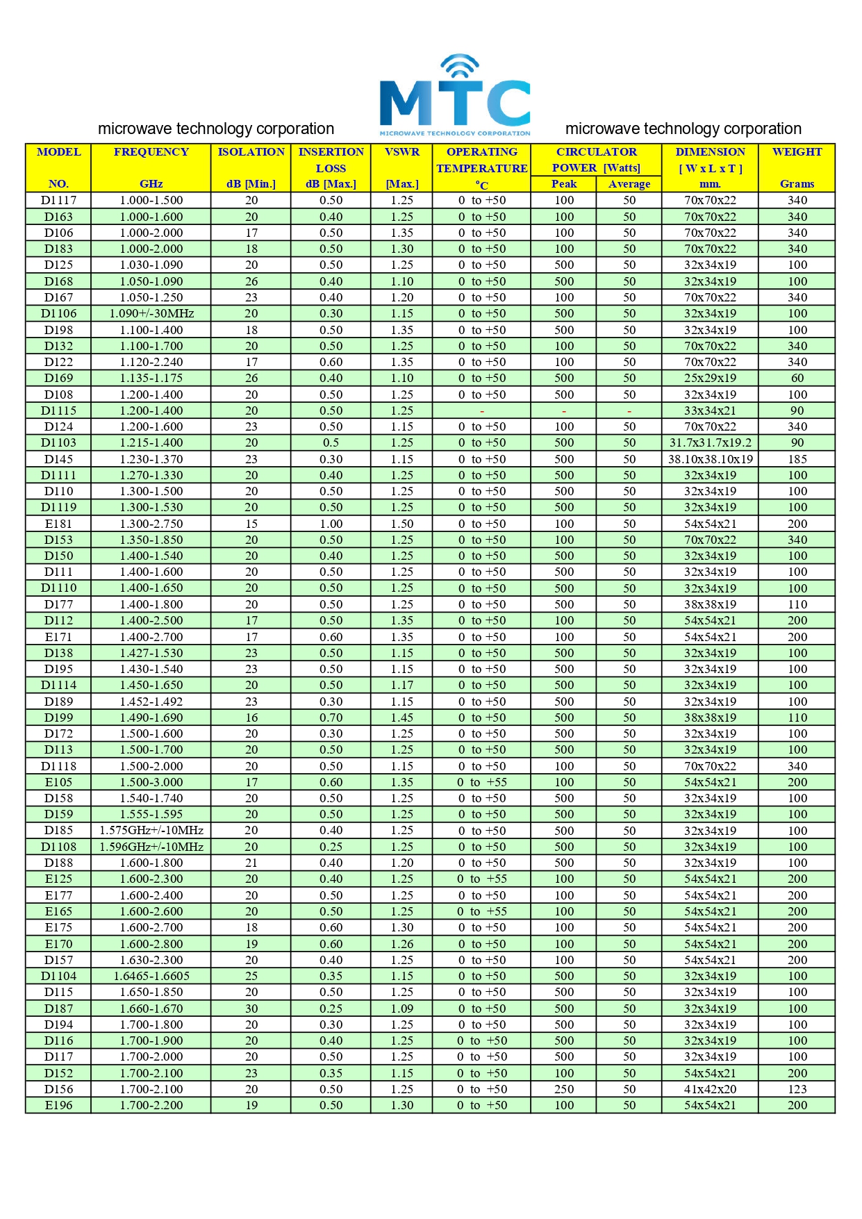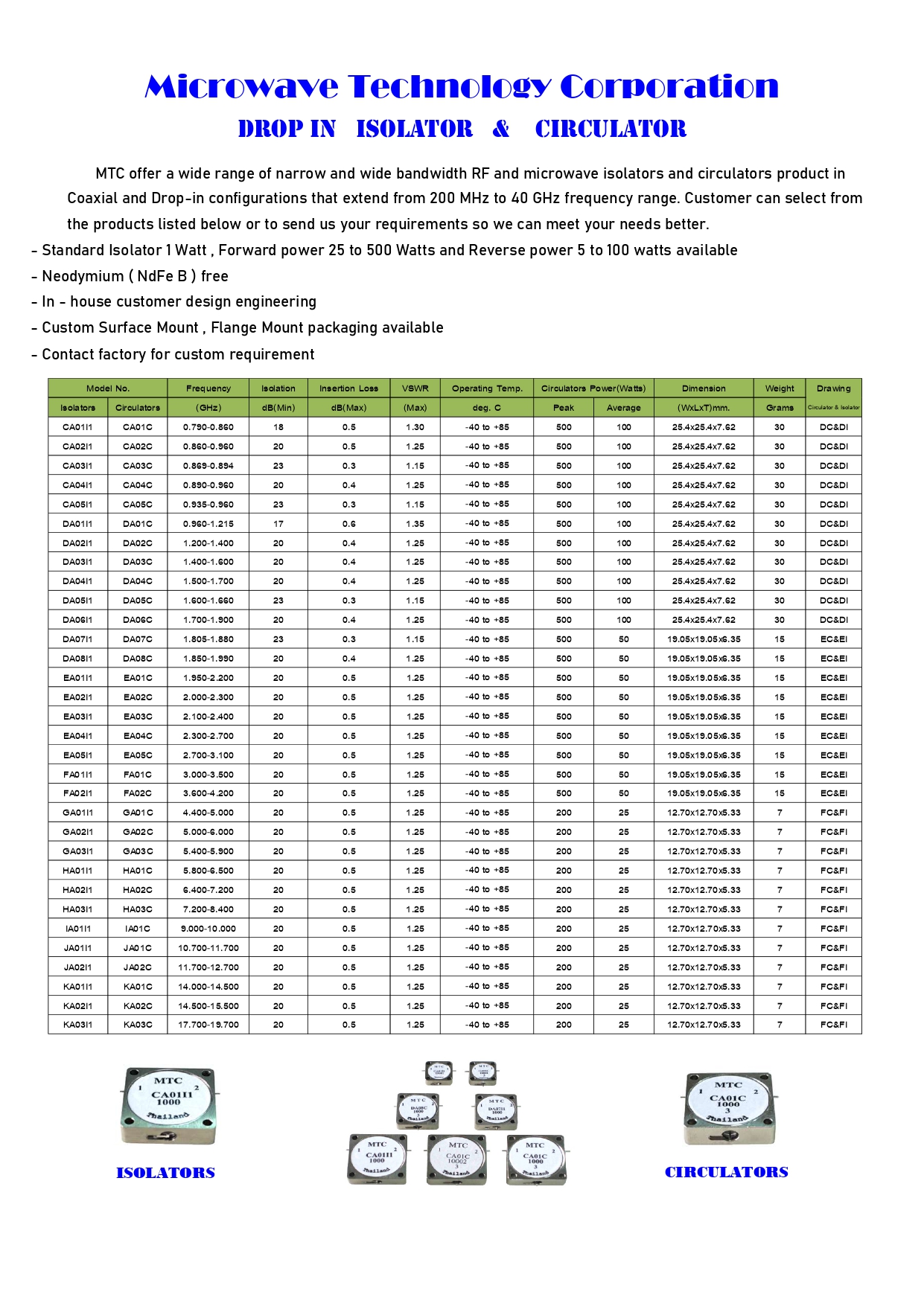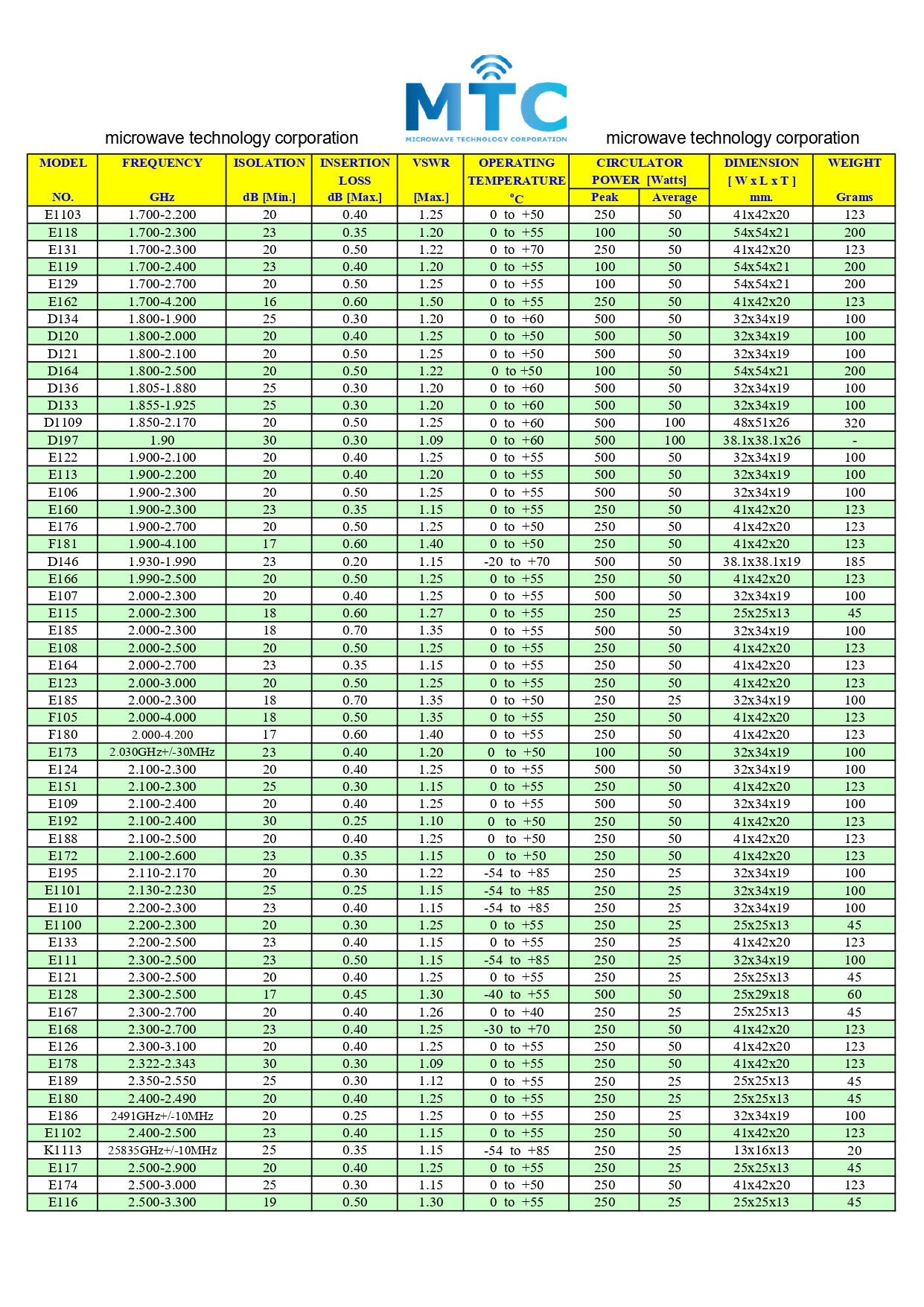 MTC-E CATALOG